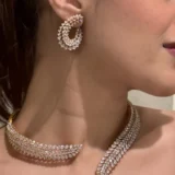 The Celestial Spark Diamond Necklace Set is the epitome of contemporary luxury, designed for women who appreciate the beauty of refined craftsmanship. This versatile and radiant set is your go-to for adding timeless glamour to any look.