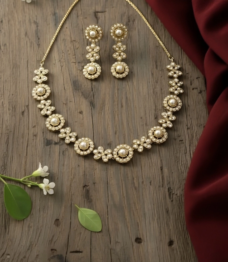 – Sophisticated Simplicity: For a more subtle yet elegant appearance, style this necklace with a solid-colored kurta . The understated beauty of pearls and gold adds a touch of sophistication to your everyday ethnic wear, making it perfect for family gatherings or cultural events.