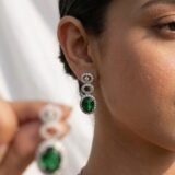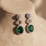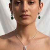 How to Style: This elegant set is perfect for adding a touch of sophistication to any outfit. Pair it with a classic black dress or a sleek evening gown for a formal event, allowing the green stone to stand out as the statement piece. For a more casual yet chic look, style it with a crisp white shirt or a pastel-colored blouse to bring out the subtle shine of the silver frame. Whether you’re heading to a business meeting or a dinner date, this set effortlessly enhances your ensemble with a touch of luxury.