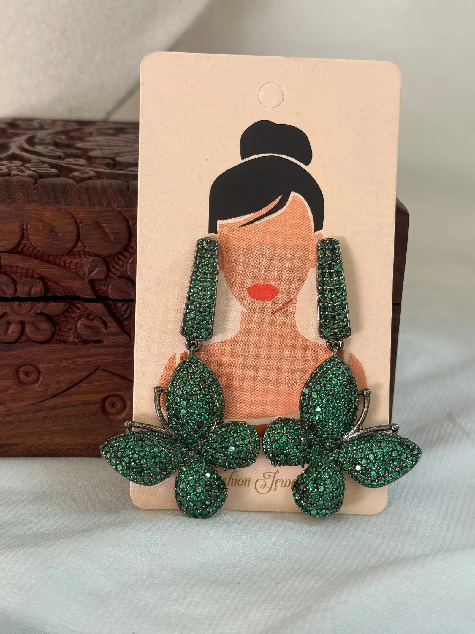 Flutter into elegance with these Emerald Green Butterfly Statement Earrings, a mesmerizing blend of nature’s beauty and sparkling sophistication. Designed for those who love bold yet graceful jewelry, these earrings feature intricately pavé-set emerald green crystals, forming a dazzling butterfly silhouette.