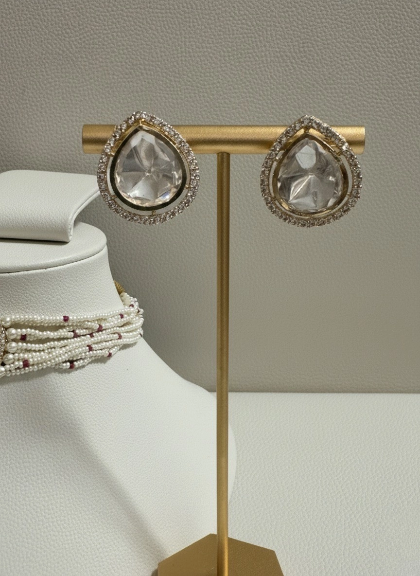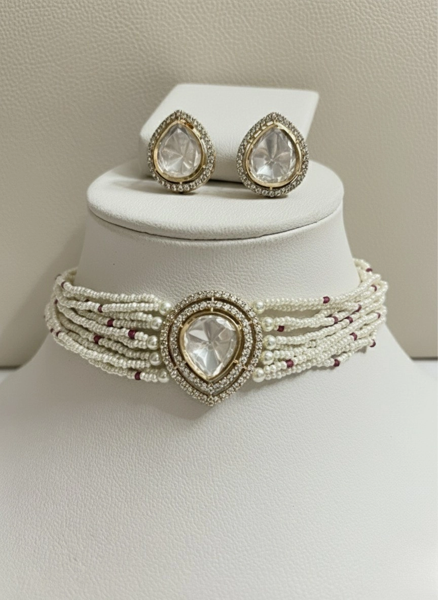 Elevate your style with our exquisite choker featuring a large, ornate shape Kundan surrounded by CZ stones, exuding elegance and sophistication. Adorned with vibrant red stones along its length, this choker adds a captivating pop of color, making it ideal for formal events like weddings and parties. It effortlessly enhances any outfit, infusing glamour and charm into your ensemble. Make a statement with our stunning choker, a must-have accessory for any special occasion.