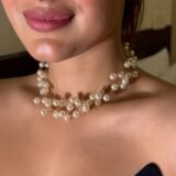 Each pearl is handpicked for its pristine luster, and the fine gold wiring gives this piece a light, almost weightless feel, making it exceptionally comfortable to wear. The multi-layered design drapes beautifully around the neckline, allowing it to be styled in various ways—whether as a subtle everyday luxury piece or as an elegant statement for special occasions.