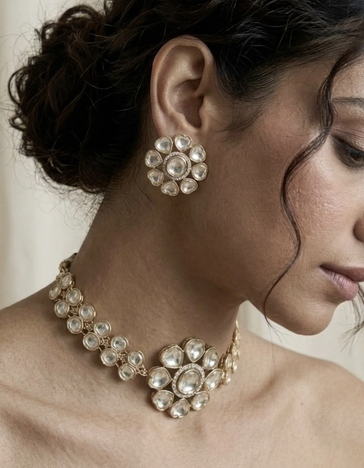Crafted with meticulous attention to detail, the set balances traditional artistry with modern refinement. Its dazzling brilliance makes it ideal for weddings, festive occasions, or grand celebrations, pairing seamlessly with both traditional attire and contemporary evening wear. A statement piece that embodies elegance, this set is destined to become a treasured heirloom.