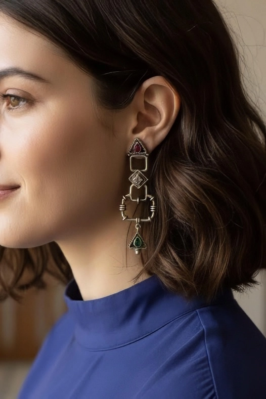 The interplay of black accents, textured gold motifs, and cascading beadwork ensures these earrings stand out as a statement accessory—regal, traditional, and unforgettable.
