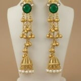 Perfect for weddings, festive occasions, and ceremonial gatherings, these earrings embody regal sophistication. The interplay of green gemstones, gold craftsmanship, and pearl accents ensures they stand out as a statement accessory—traditional, vibrant, and unforgettable.