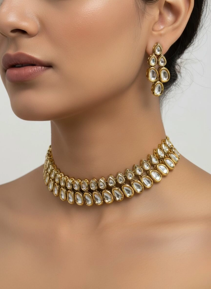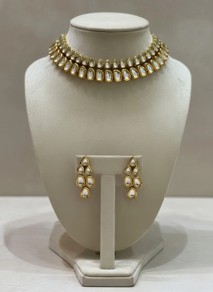 Gold & Kundan Teardrop Choker Necklace Set with Earrings – Shivanshri