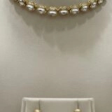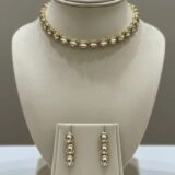 A statement of refined sophistication, this choker set features luminous oval-shaped gemstones, each encased in radiant gold settings that exude timeless charm. The necklace’s graceful alignment of oval stones creates a fluid rhythm across the neckline, offering both elegance and versatility.
