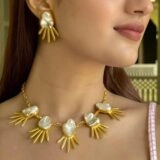 Coordinated earrings that echo the necklace’s bold design, adding a touch of sophistication to your ensemble. - Contemporary Craftsmanship: