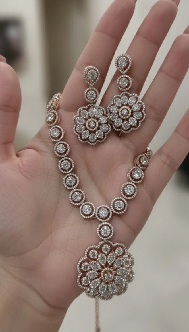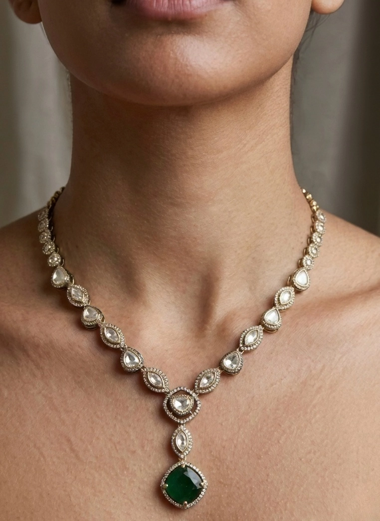 Embrace the charm of our Moissanite Polki Necklace Set and make a lasting impression wherever you go. Order yours today and experience the blend of tradition and modern elegance.
