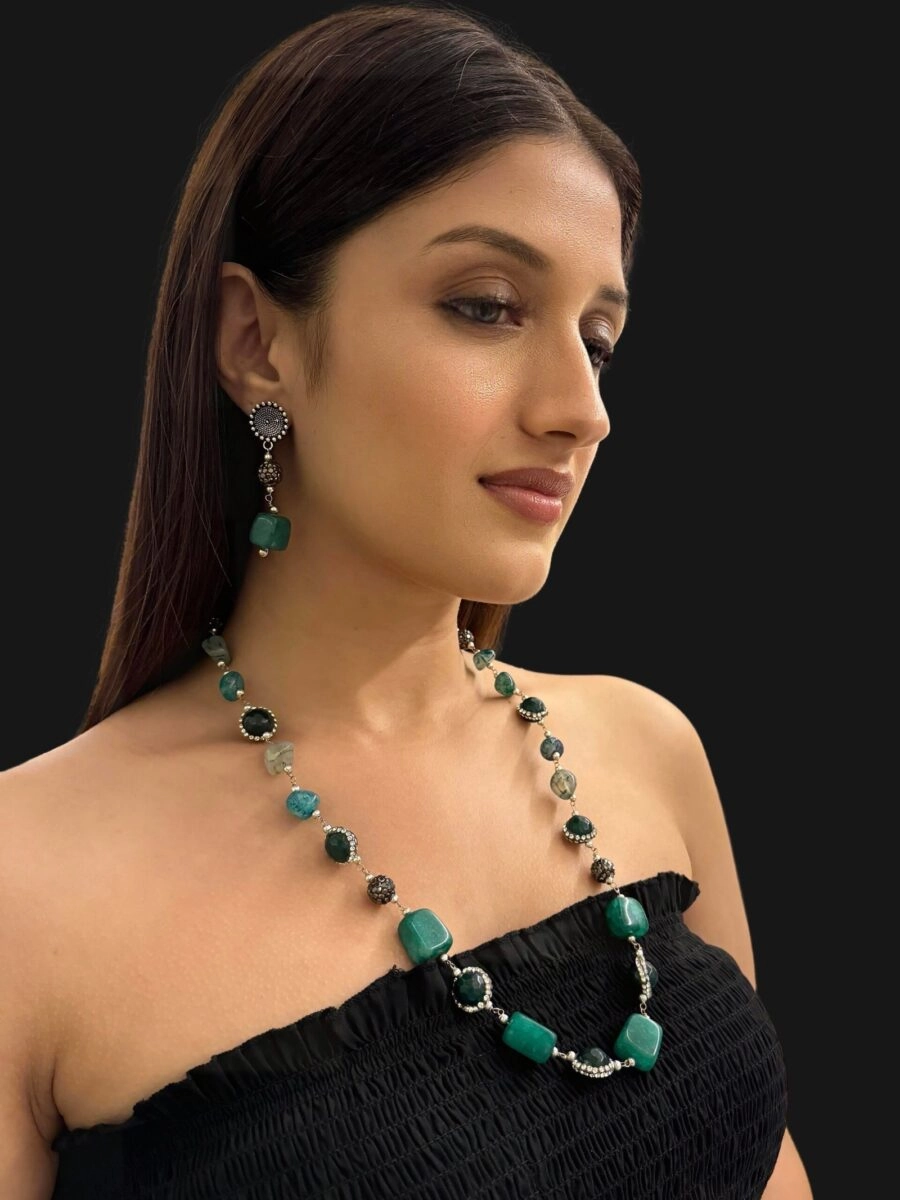Each piece in this set is adorned with intricate detailing, showcasing the craftsmanship and dedication of our artisans. The careful arrangement of stones and the flawless finish make this set a true masterpiece.