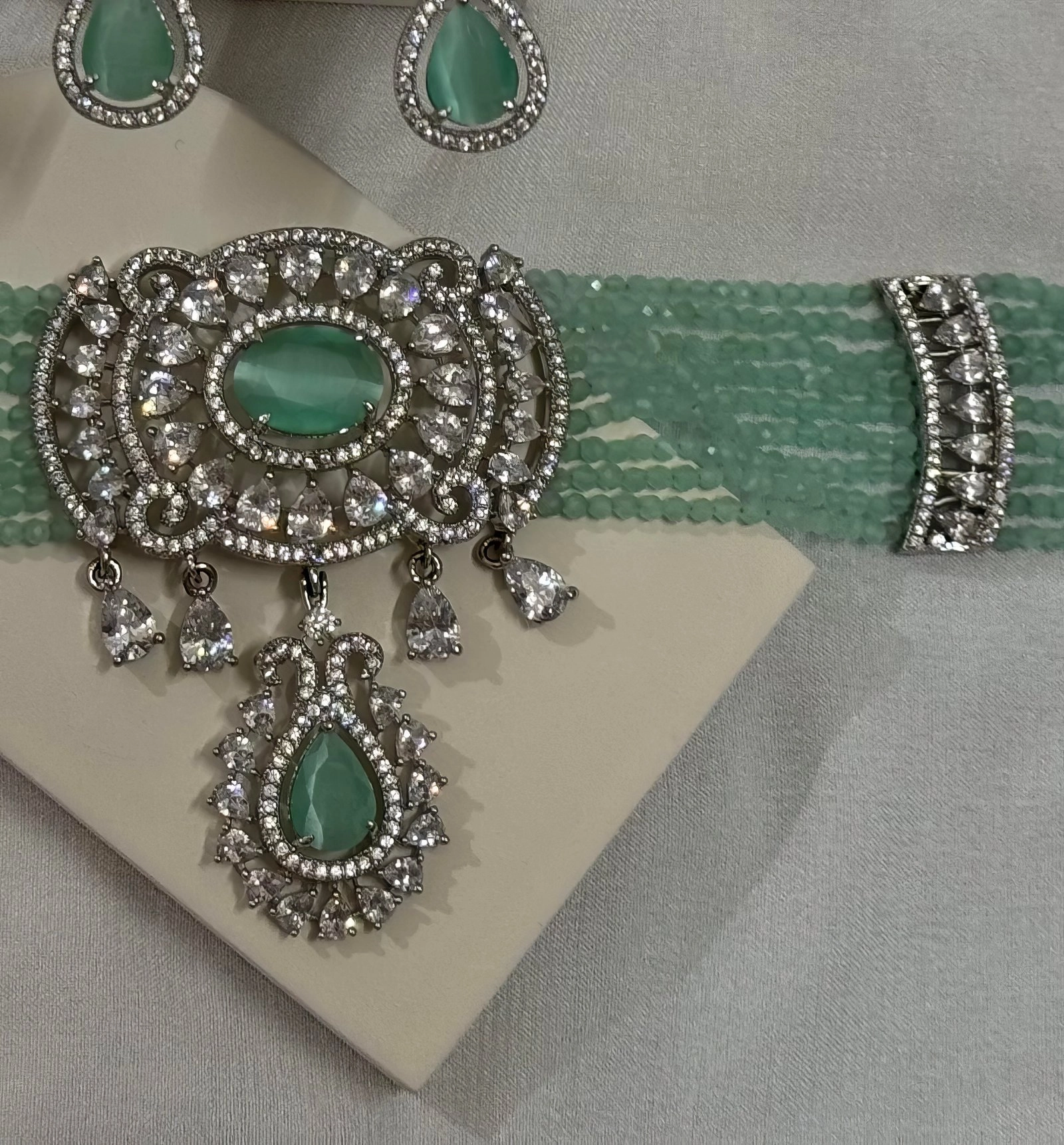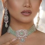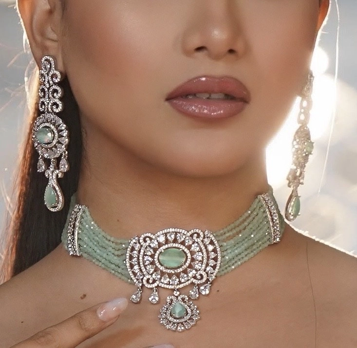 Capture the timeless elegance of our meticulously crafted choker necklace adorned with green turquoise beads and semi-precious diamonds. Versatile enough to complement any attire, whether casual or formal, this choker is a must-have addition to your jewelry collection.