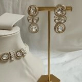 Indulge in timeless elegance with our exquisite choker necklace, meticulously crafted from a harmonious fusion of pearls, Kundan, and CZ stones. Enhanced by CZ stones, it radiates refined charm and glamorous allure, effortlessly elevating any ensemble with grace and style. Make a statement with this standout accessory that exudes effortless sophistication.