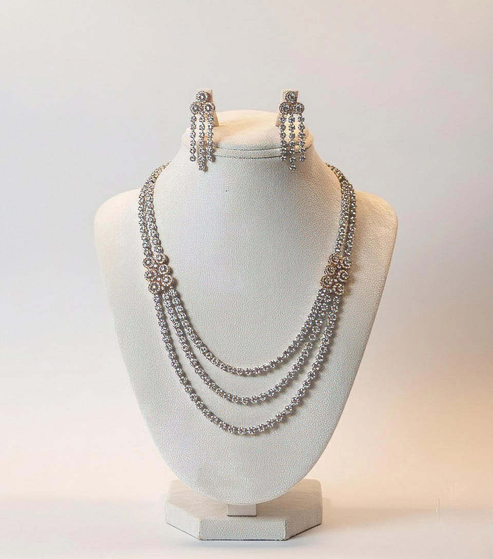 Experience the timeless elegance of our silver-Plated diamond Necklace, elevated with scintillating diamonds, and accented with rose gold-plated stones.