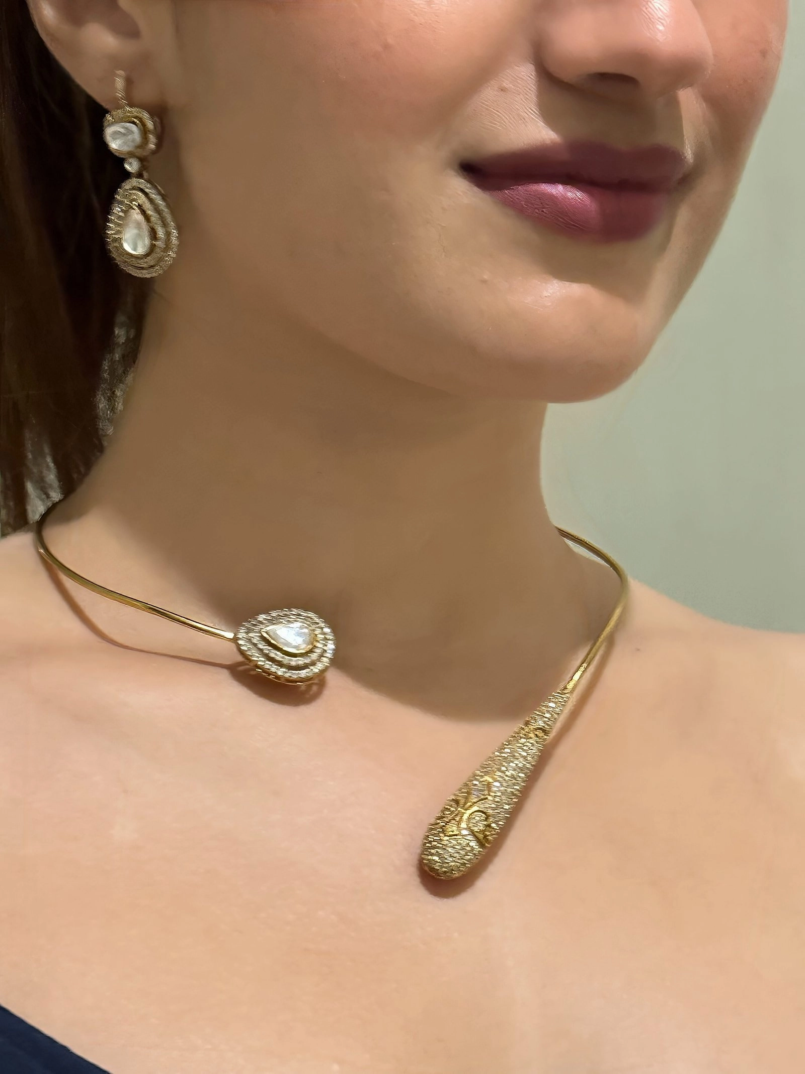 Contemporary Asymmetrical Gold Collar with Kundan Earrings – An Icon of Elegance