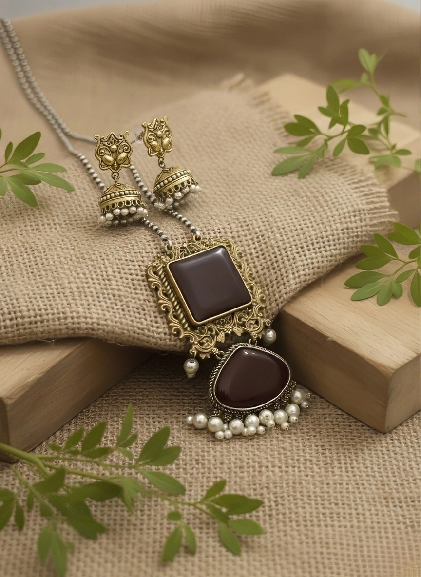Vintage Elegance: The oxidized silver and antique gold detailing create a rustic, timeless appeal.