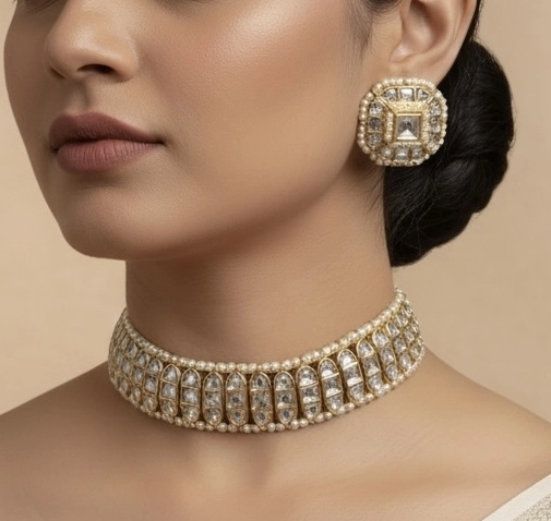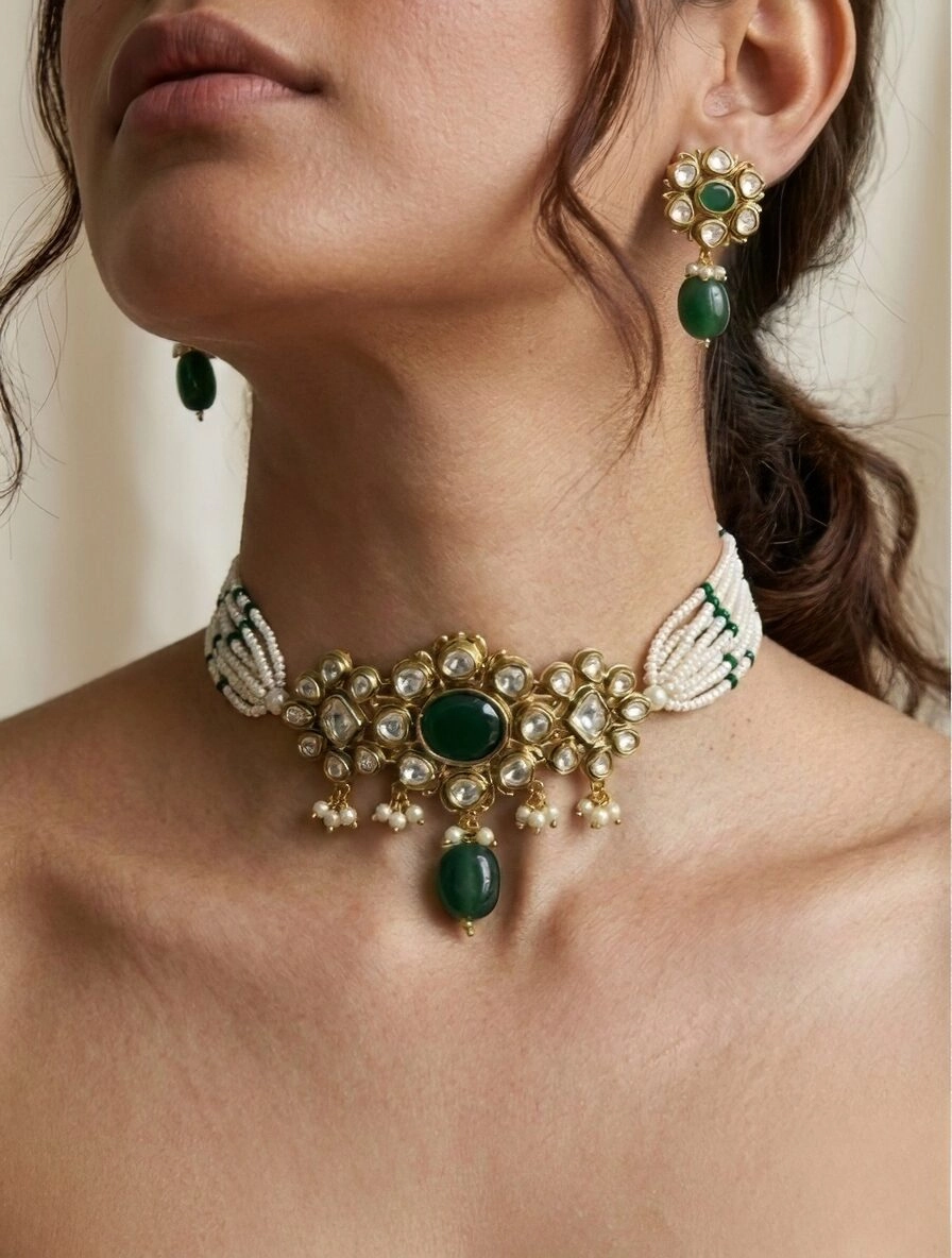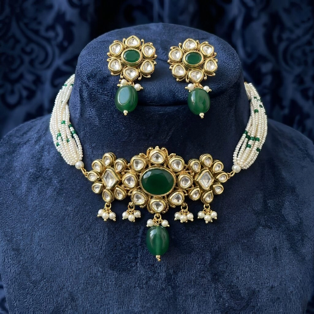 – Perfect for: Weddings, festive occasions, and special celebrations Why You’ll Love It: This choker set embodies a perfect balance of classic tradition and contemporary elegance. It’s ideal for those who cherish the beauty of handcrafted jewelry and wish to make a statement at every event. Add this exquisite piece to your collection and experience the charm of fine craftsmanship with Shivanshri.