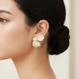 Gracefully sculpted to evoke the charm of a blooming flower, these earrings feature three soft beige petals encircling a luminous white pearl-like bead at the center. The delicate matte finish of the petals contrasts beautifully with the gentle sheen of the pearl, creating a harmonious blend of texture and elegance. Lightweight and versatile, they add a touch of refined femininity to both daywear and evening ensembles. Perfect for spring occasions, garden parties, or gifting moments that call for subtle sophistication.