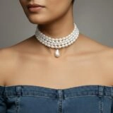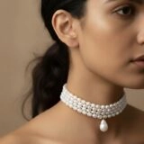 Timeless elegance meets couture craftsmanship in this multi-row pearl choker, designed to grace the neckline with refined sophistication. Composed of tightly arranged white pearls, each strand is meticulously aligned to create a seamless, sculptural collar that hugs the neck with classic charm. The pearls exhibit a lustrous sheen, reflecting light with every movement and enhancing the wearer’s natural glow.