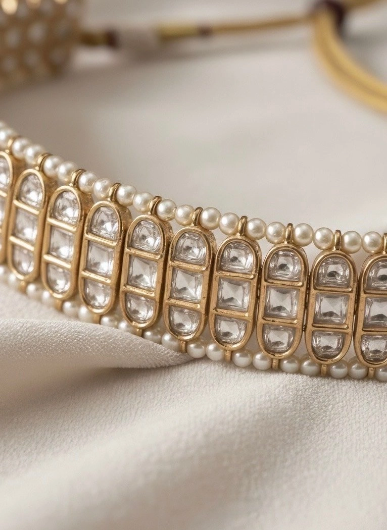 Rose Gold Kundan-Studded Pearl Choker Set – Shivanshri