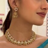 Discover the allure of tradition and timeless beauty with Shivanshri’s Pearl Choker Set. This exquisite jewelry set is crafted with meticulous attention to detail, showcasing a delicate arrangement of pearls, colored stones, and golden accents. Designed to exude grace and sophistication, it’s perfect for celebrating life’s special moments.