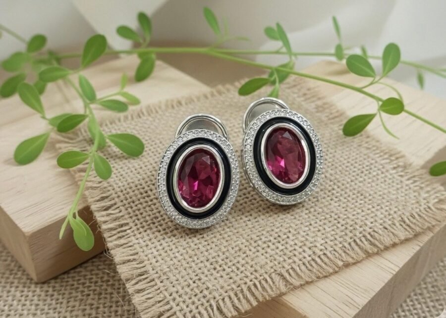 925 Silver Timeless Elegance with Green Stone and White Pearls Earrings