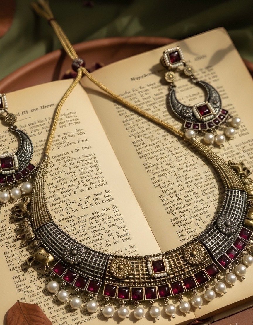 Antique Oxidized Silver Radha-Krishna Temple Necklace Set – A Divine Heritage Treasure