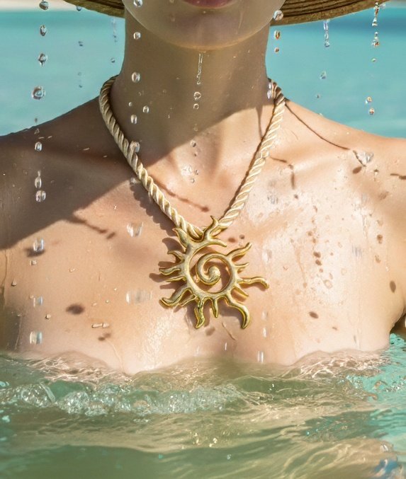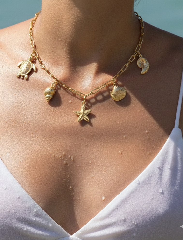 18K Real Gold Plated Marine Style Sun Starfish Conch Pendant Necklace in 304 Stainless Steel