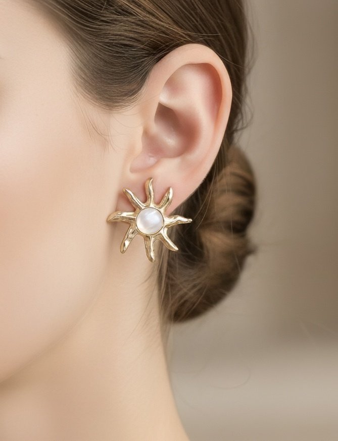 18K Real Gold Plated Flower Ear Studs in Waterproof Non-Tarnish 304 Stainless Steel Classic Style